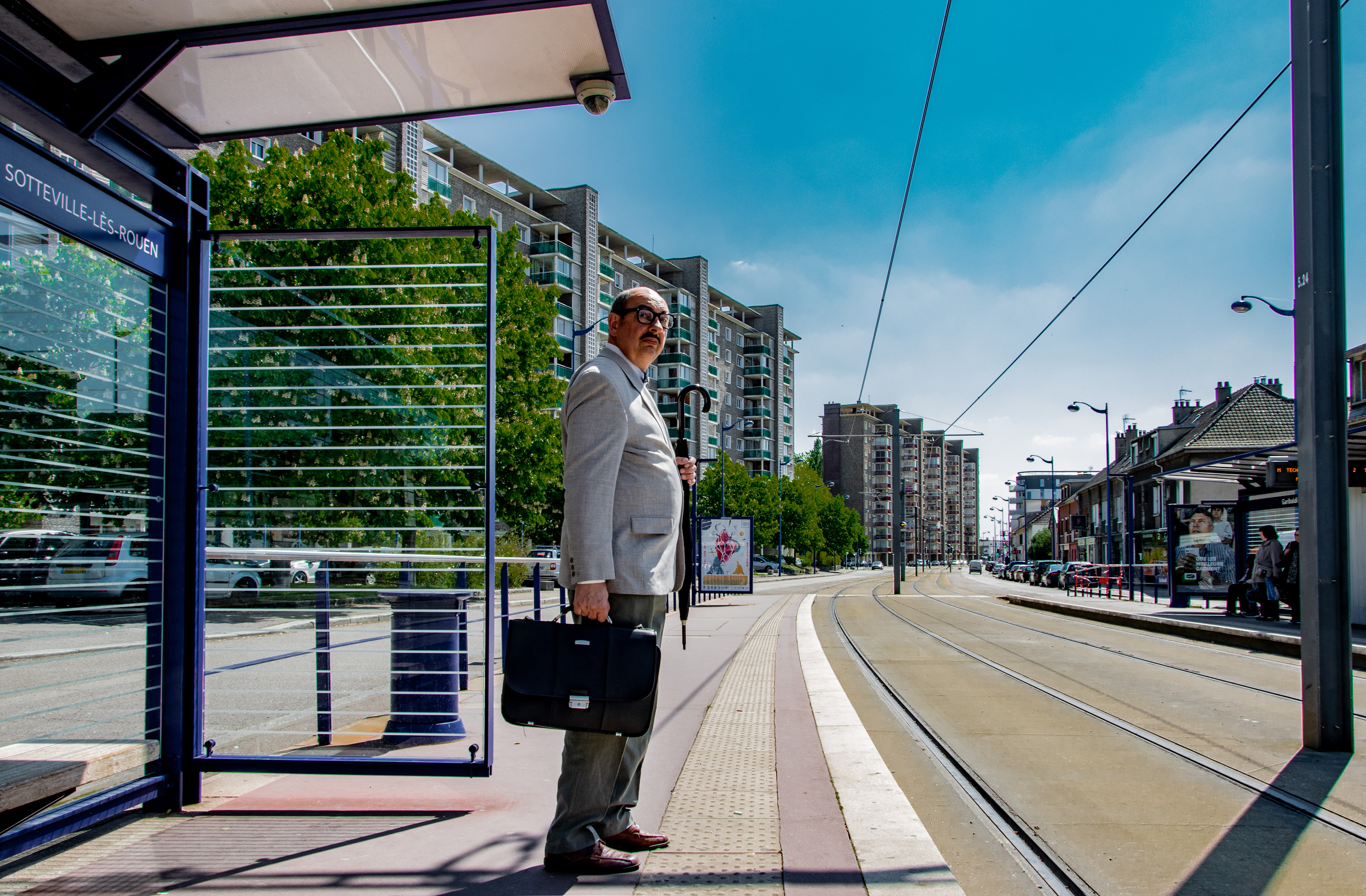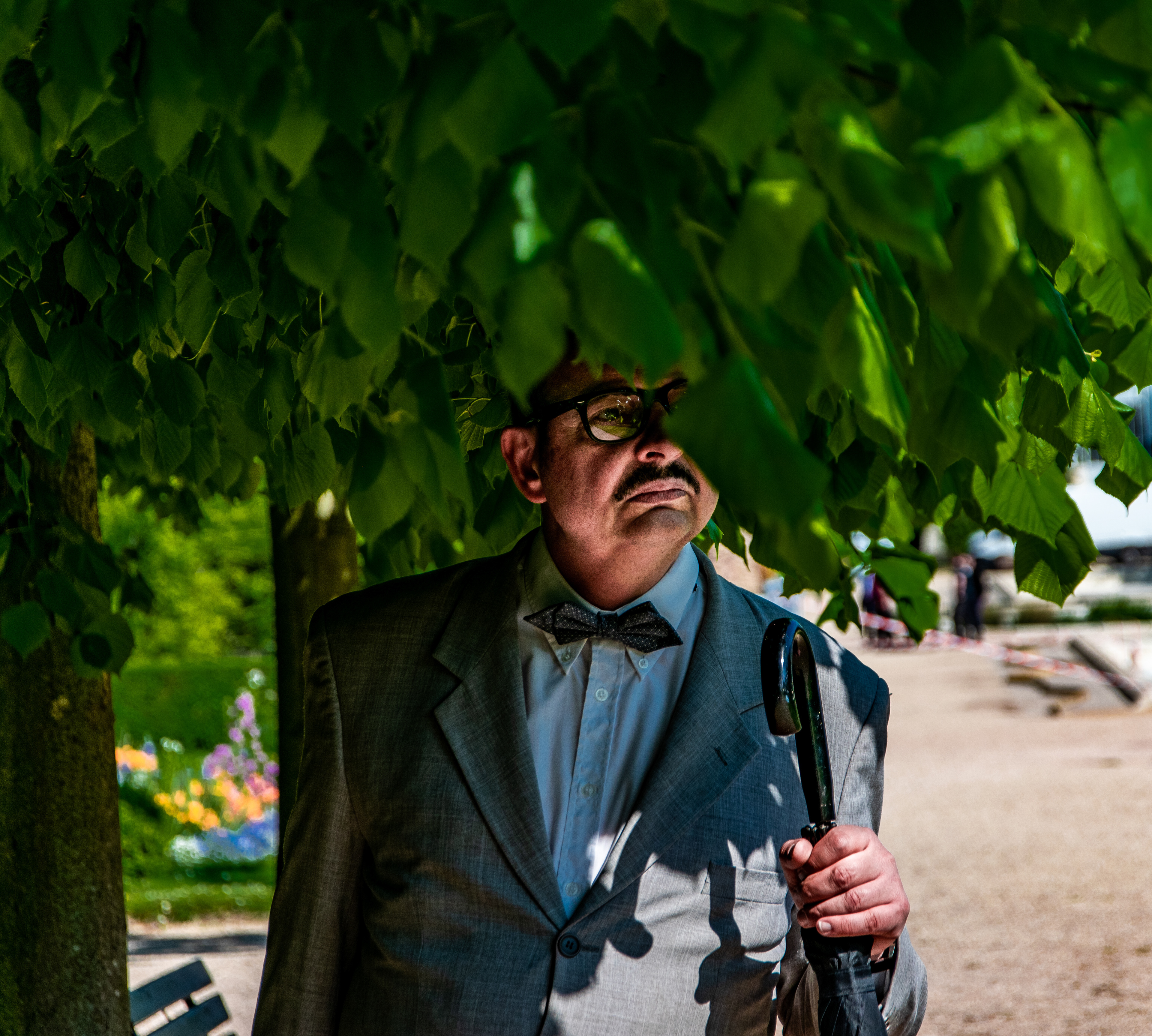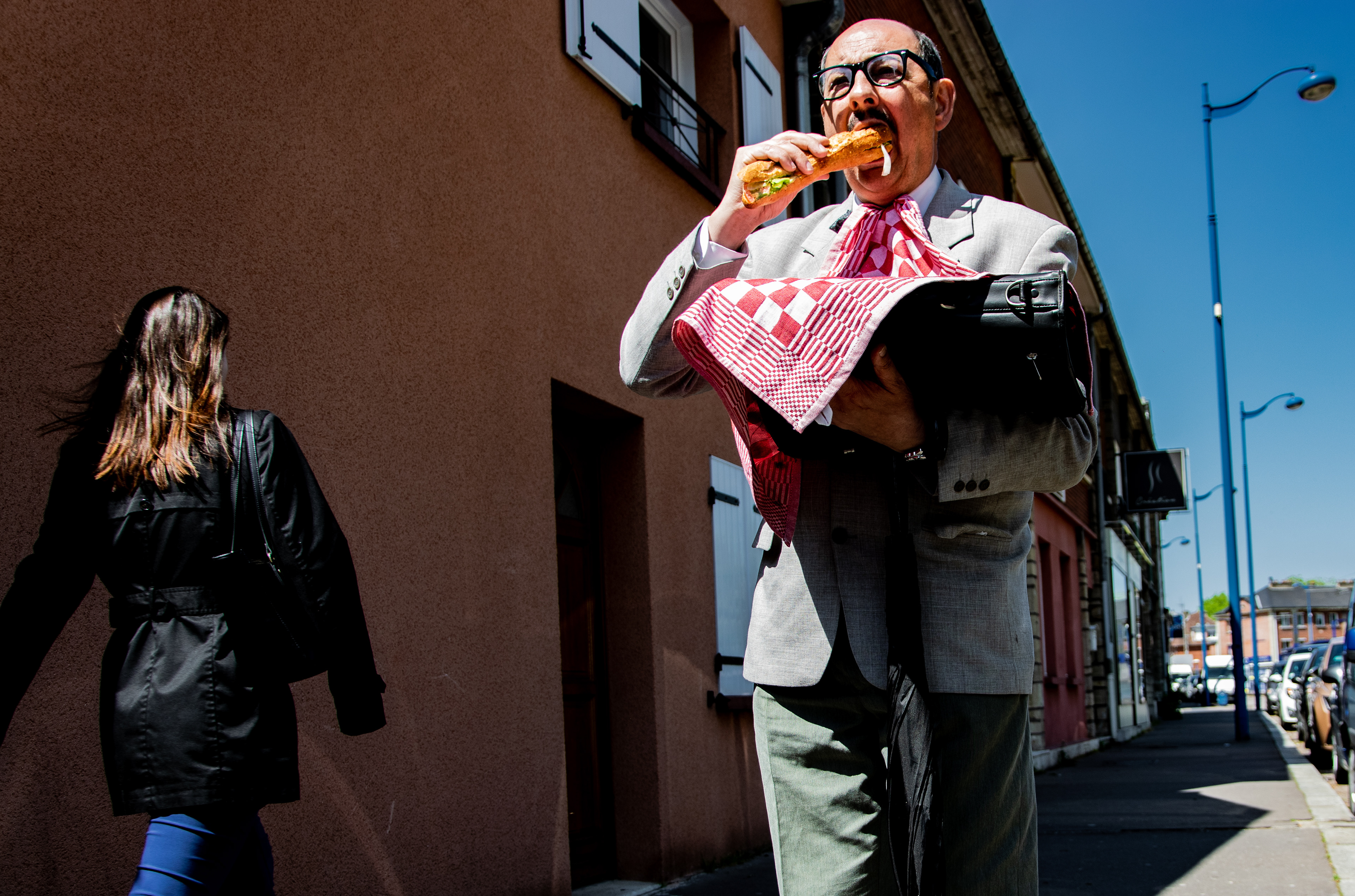 Théâtre de rue. Le parcours insolite de l’huissier Jacques de Valambris pour accomplir sa mission. Une pièce écrite et interprété par Hervé Goubert.