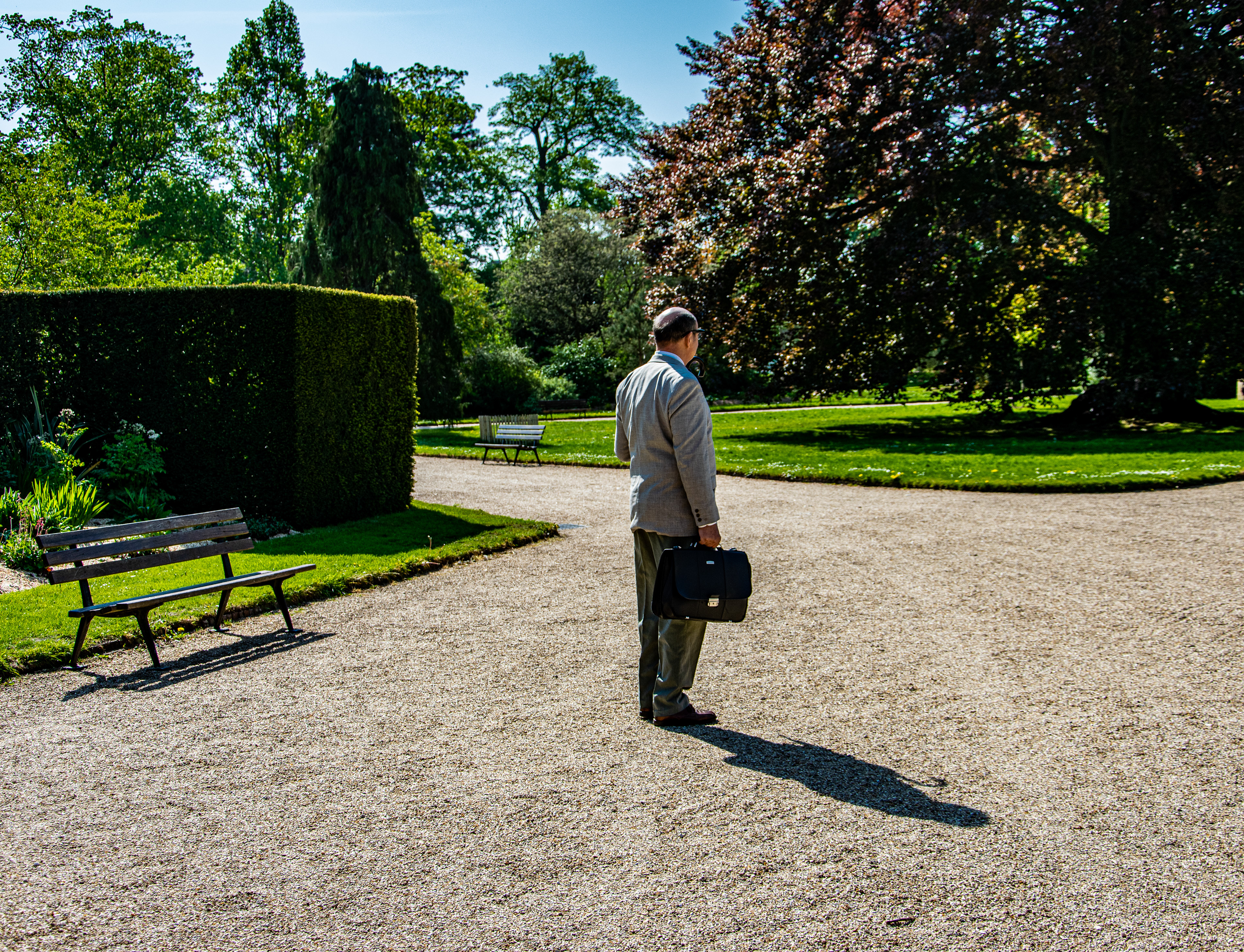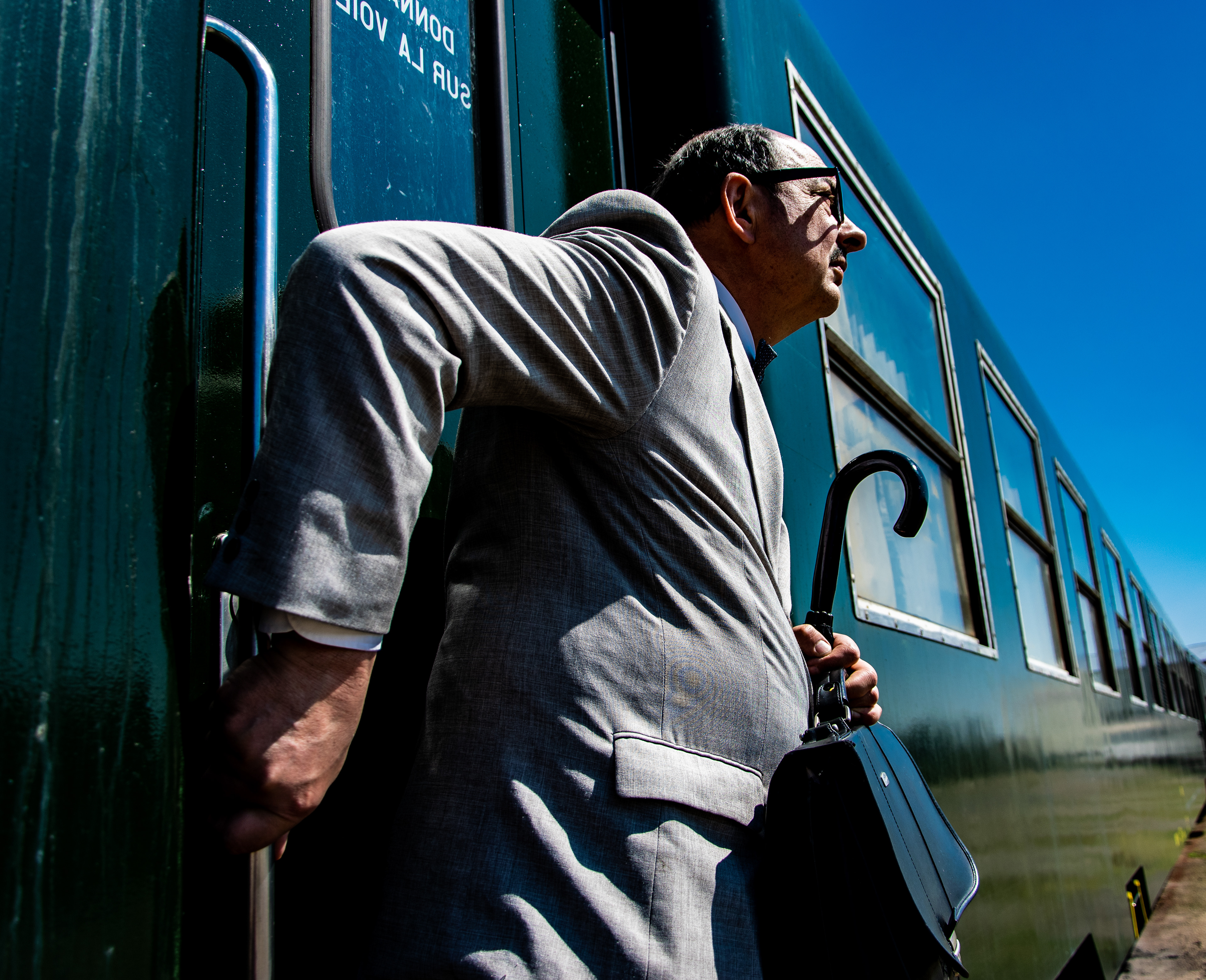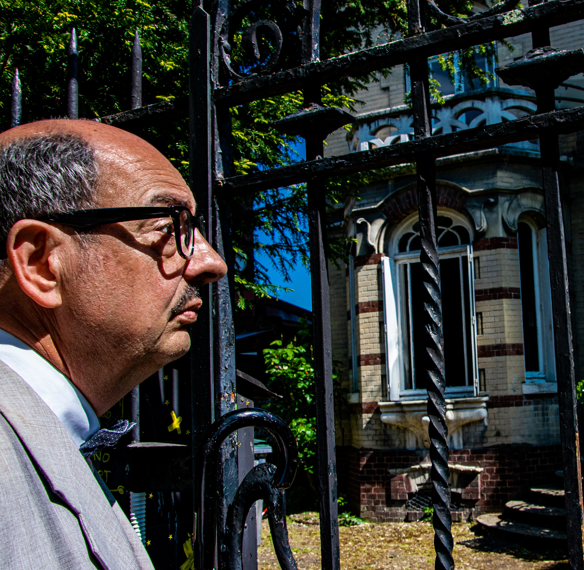 Théâtre de rue. Le parcours insolite de l’huissier Jacques de Valambris pour accomplir sa mission. Une pièce écrite et interprété par Hervé Goubert.
